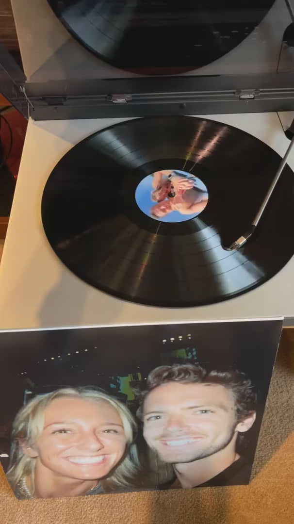 Turn your favorite moment into a real vinyl record. Whether it’s for your partner, a wedding gift, an anniversary, or a keepsake, this custom vinyl is made to feel personal, meaningful, and timeless. Upload your photo, choose your song, and we’ll create a one-of-a-kind record you’ll want to keep forever.